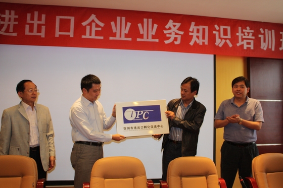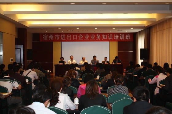 下午2:30,“宿州市進出口孵化促進中心授牌儀式”在該市華夏大酒店隆重舉行。省進出口孵化促進中心陳征主任、省進出口商會馬錦運秘書長、宿州市商務局王建明副局長等有關領導參加了授牌儀式。朱亮董事長在會上做了發言,武義海部長對宿州市40多家重點進出口孵化企業進行了《外貿業務實戰演練》的業務培訓。
