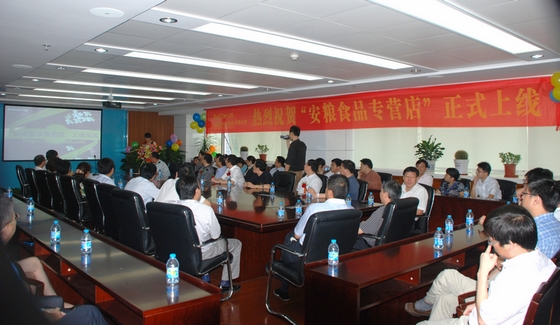 經(jīng)過5個月的精心籌備,7月20日上午11:30分,公司電子商務(wù)平臺——“安糧食品專營店” ( http://alsp.tmall.com)在15樓會議室舉行隆重的上線儀式,公司管理層以及各子公司、各部門代表60余人參加了上線儀式。