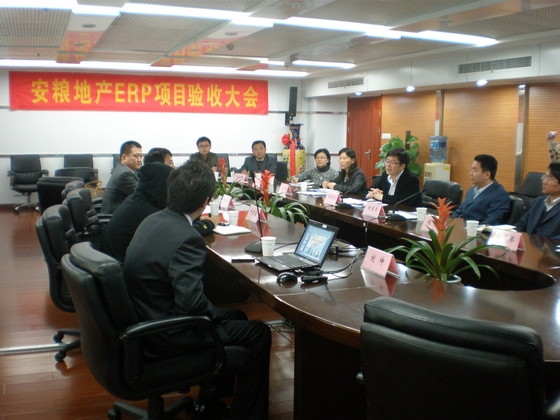 11月1日,安糧地產在公司18樓會議室召開ERP項目驗收大會。安糧地產董事長方宗友、金蝶軟件助理總裁周華鋒以及雙方公司主要領導、各業務線負責人和項目組全體成員出席了本次項目驗收會。