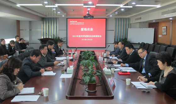 會議聽取了愛地農業各部室負責人述職報告以及2013年部室工作計劃等匯報,員工分別作了2012年工作小結,并進行了現場考評。