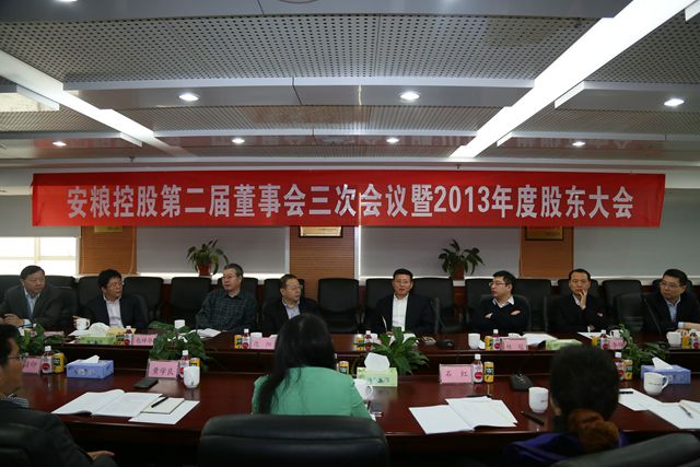 4月13日,公司召開安糧控股第二屆董事會第三次會議暨2013年度股東大會。公司董事會成員包祥華、桂冠、李錦鐸、方宗友、曹訓(xùn)立、宋恩君參加會議。監(jiān)事會成員陳素萍、黃學(xué)良、石紅及經(jīng)營層成員儲潔印、潘冬生、張來往列席會議。國貿(mào)集團(tuán)范陽董事長應(yīng)邀出席會議。會議由董事長主持。