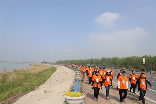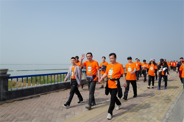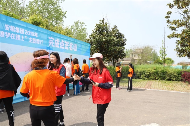 一路上,統(tǒng)一著裝的毅行隊伍如一股橙色的春潮,激蕩在碧波萬頃、楊柳接岸的巢湖之濱。伴著融融春日,吹著習習微風,毅行隊伍一邊暢享行走的樂趣,一邊欣賞大美巢湖的秀麗春色,一邊笑談工作或生活的點滴。上午10點5分,來自安糧實業(yè)的薛寶第一個沖破終點線,隨后,其他毅行者也陸續(xù)抵達終點。大家在留言墻上簽名并合影留念,一張張笑臉洋溢著成功的喜悅。