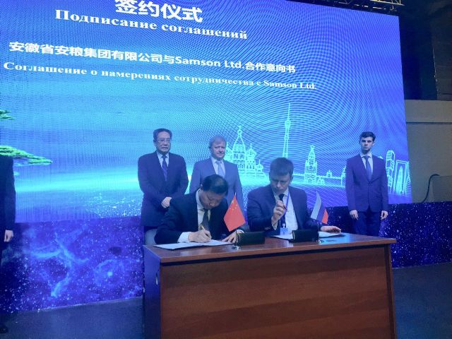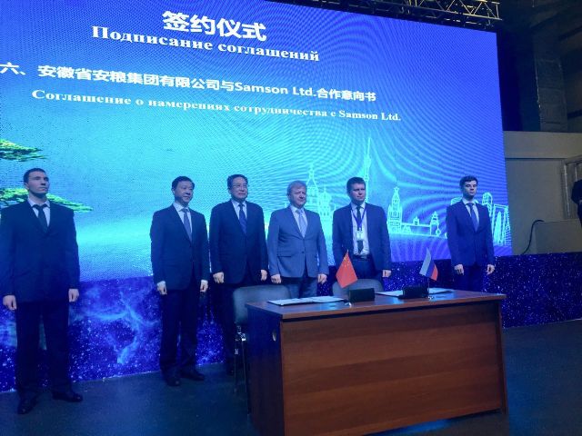 簽約儀式上,曹訓(xùn)立董事長(zhǎng)代表安糧集團(tuán)與俄羅斯知名連鎖超市Samson Ltd.代表 Ilya Chekanov 先生簽署了雙方在深化合作擴(kuò)大貿(mào)易額、電商業(yè)務(wù)的拓展以及Samson公司為安糧集團(tuán)橋接當(dāng)?shù)刭Y源向中國(guó)進(jìn)口的戰(zhàn)略合作意向書(shū)。