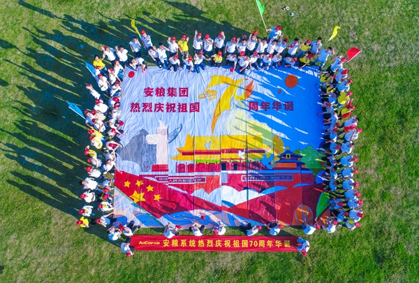 隨后的戶外拓展在六安進行。為了迎接祖國70周年華誕,公司特別設計了“共繪藍圖”主題拓展活動,由團隊共同繪制巨型天安門圖畫,表達了安糧人強烈的愛國情懷和報效祖國的堅定信念。通過破冰、晚會及拓展活動的鍛煉,提高了新員工的團隊意識,加強了彼此之間的情感交流。