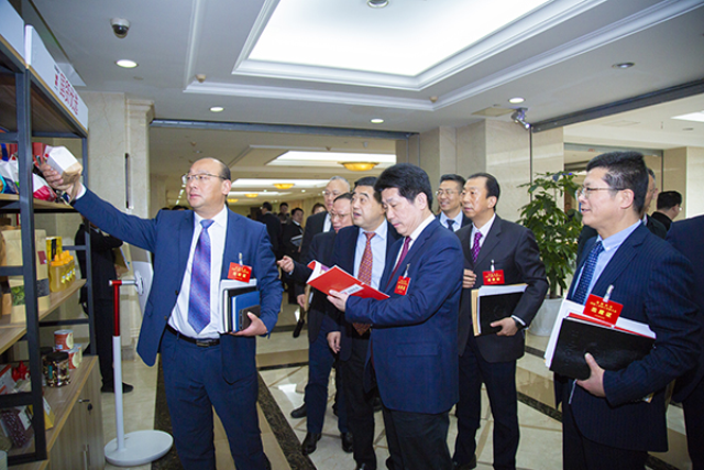 2024年1月30日,海螺集團召開2024年工作會議暨四屆二次職工代表大會,安徽國貿在會場外專門設置了“國貿優選”展位,展示推介精心準備的所屬單位系列特色產品,包括休閑食品、家用電器、精品箱包、寵物食品和家紡產品等。海螺集團黨委書記、董事長楊軍與集團其他領導來到展區參觀指導。