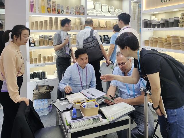 安糧家居展位由安糧國際日用品事業(yè)部攜數(shù)百款單品展出,產(chǎn)品幾乎覆蓋一次性餐廚全套系列。本次展會重點推出了全新的PHA高端系列以及壽司盒、紙盤、甘蔗漿吸管、超細纖維抹布等新品,在館內(nèi)格外醒目、深受青睞。此外,部門順應(yīng)綠色環(huán)保趨勢,推出了一系列最新環(huán)保產(chǎn)品,吸引了不少具有環(huán)保意識的客戶群體關(guān)注。攤位模擬國外超市擺放,仿造小型超市。擺放的產(chǎn)品統(tǒng)一設(shè)計包裝,著眼聚焦“產(chǎn)品系列化+全流程服務(wù)”,為全球采購商提供便利的“一站式采購服務(wù)”,獲得新老客戶的一致認可與好評。