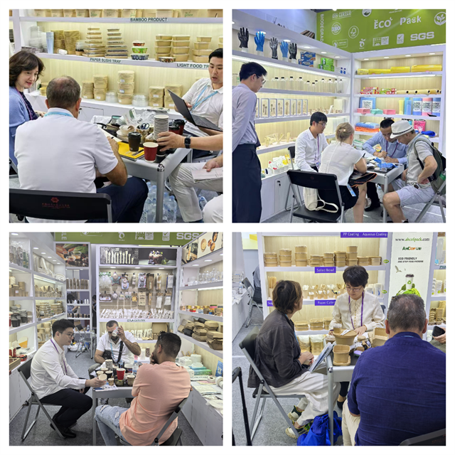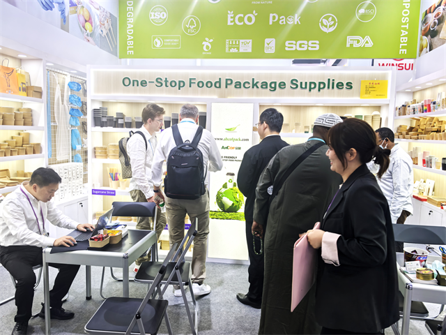 在全球化與個(gè)性化的雙重驅(qū)動(dòng)下,消費(fèi)者對(duì)產(chǎn)品的需求日益多樣化。本期會(huì)展安糧積極擴(kuò)充產(chǎn)品規(guī)格,豐富產(chǎn)品種類(lèi),帶來(lái)了深受客戶喜愛(ài)的全降解紙杯、紙刀叉、紙質(zhì)蘸料杯等一次性日用品。尤其是本次推出的以竹、木、甘蔗渣等為原材料的新產(chǎn)品輕食盒,在開(kāi)展當(dāng)天吸引了一大批歐美客戶的咨詢。